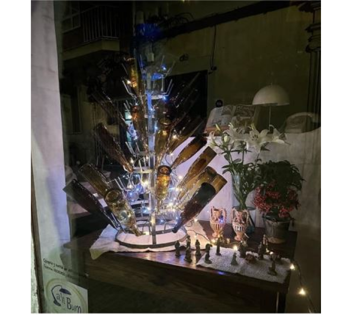 Una pieza única y sostenible hecha con botellas de vidrio, perfecta para iluminar y decorar cualquier espacio con un toque creativo.