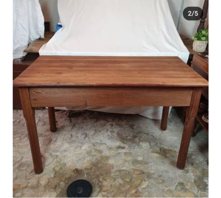 Mesa robusta con un diseño clásico y elegante, ideal para ambientes rústicos o tradicionales. Medidas: 132 x 69 x 80 cm.